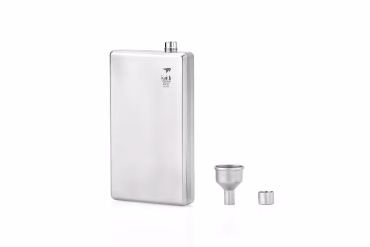 En ultralätt Plunta gjord av ren titan från Keith Titanium, pluntan har låg en vikt på 80g och 200ml i kapacitet, lagom till att förvara dryck till en resa, camping, vandring och jakt. Till pluntan får du även med dig en titan tratt som kan användas när du häller in vätskan i pluntan/flaskan.