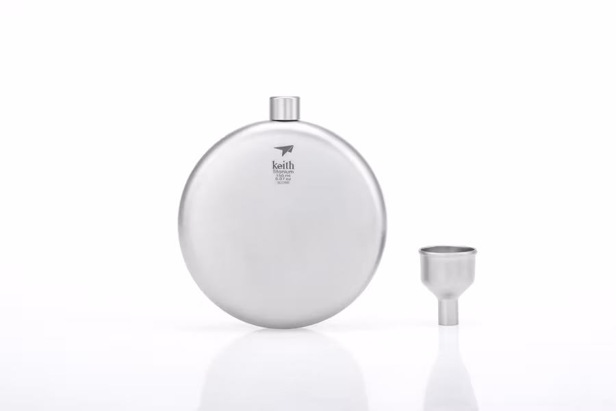 En ultralätt Plunta gjord av ren titan från Keith Titanium, pluntan har låg en vikt på 56g och 150ml i kapacitet, lagom till att förvara dryck till en resa, camping, vandring och jakt. Till pluntan får du även med dig en titan tratt som kan användas när du häller in vätskan i pluntan.