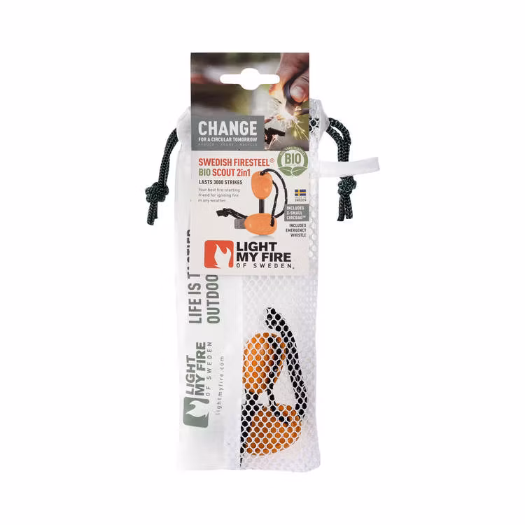 Light my Fire Steel BIO Scout är ett svensktillverkat eldstål med strykblad, det är utvecklat för armén och uppfyller det högsta tänkbara krav. Med de 3000 grader varma gnistorna gör du upp eld i alla väder, på alla höjdmeter. Tändstålet håller för hela 3000 tändtillfällen. Dessutom: ergonomisk design och inbyggd visselpipa för nödsituationer. Så - skaffa dig tekniken, gör upp din eld och se fram emot att hålla värmen och grytorna kokande.